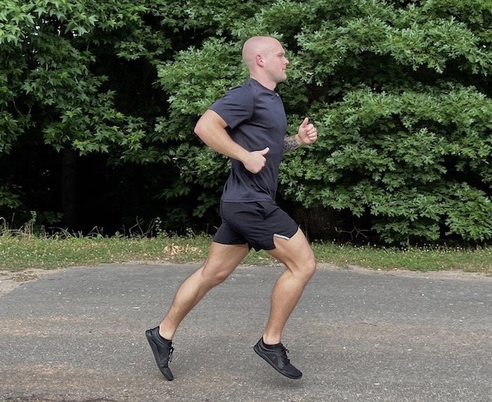 As sapatilhas desenvolvidas para correr têm uma elevação no calcanhar, somos obrigados a aterrar com o calcanhar no chão primeiro, travando o momentum da corrida, e só depois, com o pé apoiado, podemos gerar força para nos impulsionar para a próxima passada.