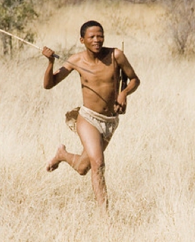 Os homens San têm uma reputação formidável como rastreadores e caçadores.  Embora usem armadilhas, o método tradicional de caça é de arco e flecha. Utilizando uma técnica de caça reconhecida como uma das mais antigas de sempre, a caça por persistência, eles perseguem a sua presa até a exaustão. Apesar de aplicarem um veneno mortal na flecha,  pode demorar horas para que um pequeno antílope morra, ou até dias no caso de animais de grande porte. As suas técnicas são tão precisas que conseguem distinguir o rastro do animal ferido do resto da manada. O veneno é neurotóxico mas não contamina o animal todo. O local onde a flecha atinge o animal é cortado e descartado, mas o resto da carne pode ser consumida. Uma vez que o efeito do veneno não é imediato, os caçadores necessitam de rastrear e acompanhar o animal até o encontrarem.